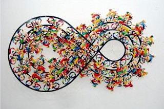 A work by Israeli artist David Gerstein. Wikimedia Commons. Shortly after my post earlier this spring about the dubious idea of π day, I started reading David Foster Wallace’s Everything and More: A Compact History of Infinity. It was the last book he published before his suicide. He called it a booklet. It was part of a series of what were intended as short accounts of Great Discoveries, but it was 319 pages long. That is short for Wallace, I guess. His novel Infinite Jest was more than 1,100 pages. And who knows how long A Pale King might have been had he lived to complete it? It was published unfinished after his death. It’s fair to say that Everything and More was not very well received, with some particularly nasty comments from mathematician/writers like Rudy Rucker (his review was titled "Infinite Confusion"). Another critic, in Notices of the American Mathematical Society, complained that the book was “laced through and through with blunders of every magnitude.” Others admired the book but with great reservations: ‘Not just a bit difficult," a reviewer wrote, "but frequently, intensely, skull-clutchingly difficult.” I think it was wonderful. There were parts I only sort of understood, and I’ve been bogged down for awhile on page 186. But more than anything I can remember, Everything and More captured the shivering feeling -- wonder, exhilaration, horror -- that can come from contemplating the infinitely large and the infinitely small. It is astonishing how vast a picture of this territory Wallace held in his head and how he was able to at least convey the contours of his obsession. “The dreads and dangers of abstract thinking are a big reason why we now all like to stay so busy and bombarded with stimuli all the time,” Wallace wrote. “Abstract thinking tends most often to strike during those moments of quiet repose. As in for example the early morning, especially if you wake up slightly before your alarm goes off. . . .” It is a reliable way to "drive yourself crazy in bed in the morning" and without anyone there to help. In those yellow-grey hours, one of the things Wallace would think about was numbers. Natural numbers, real numbers, irrational numbers, imaginary numbers, transcendental numbers. It had been a long time since I had thought of these names. The last three sounded particularly tantalizing. The real numbers are those that can be plotted on an infinitely long and infinitely dense number line -- quite an abstraction in itself. They include the natural numbers (“counting numbers” like 1, 2, 3 . . .), the integers (the counting numbers and their negatives), and the rational numbers -- those that can be expressed as a ratio of two integers. Anything expressed as a ratio can be written as a decimal that is either finite in size (1/4 = .25) or in structure, repeating indefinitely with the same pattern (2/3 = .6666 . . . or, more interesting, 1/7 = .142857 142857 142857 . . . and 11/13 is 0.846153 846153 . . .) Irrational numbers, as I wrote in the earlier post about π day, are irrational only in that they cannot be expressed as ratios. Their decimal expansions extend infinitely and never repeat. Pi is not just irrational. It is also transcendental, meaning that it is “not a root of a non-zero polynomial equation with rational coefficients.” What I think that means is that these numbers transcend description by a simple algebraic formula. (Someone please correct me if that is too loose. I am already in over my head.) Though irrational and transcendental, pi can be computed to any degree of precision. You just have to devote the time and the will, knowing that you will never really be done. As exotic as they sound, all of these numbers can be thought of as infinitely small points on the endlessly inward and endlessly outward number line. The next step in weirdness leads to the imaginary numbers like i, which is the symbol for the square root of -1. These are off the real number line, plotted instead on a perpendicular axis. Combine an imaginary and a real and you get a complex number, occupying a point on “the complex plane” -- the great space hovering between the arms of the orthogonal boundaries. Multiplying by i is the equivalent of a rotation -- a handy tool but what is i really? Do we invent this stuff or does it exist in a separate realm? Far more recalcitrant than all of these are the noncomputable numbers. These cannot be calculated by any conceivable computer. Worse still, there are infinitely more noncomputable numbers than computable ones. The proof can be traced to the 19th-century mathematician Georg Cantor -- the “diagonal argument” might ring a bell or the idea of countable versus uncountable infinities. The way I try to think about this is that for any computable number there is an algorithm -- a computer program -- that can churn it out in a finite amount of time. This program, like all programs, would consist of a string of 1s and 0s -- the binary rendition of a number that can be represented as a point on the real number line. There is an infinity of these bit strings. But if you plotted every one, there would still be huge gaps in between -- the numbers that no algorithm can produce. Noncomputable. And if you can't compute them, in what sense do they exist? Cantor is the consuming passion of Wallace’s book. The mathematician suffered from severe depression and was in and out of asylums, dying in 1918 in a sanatorium. Wallace rejects the romantic notion that Cantor was driven mad by infinity, that he was a modern-day Prometheus, “the one who goes to forbidden places and returns with gifts we all can use but only he pays for.” Cantor’s fire was his understanding of infinity. But that, Wallace writes, is not what killed him.