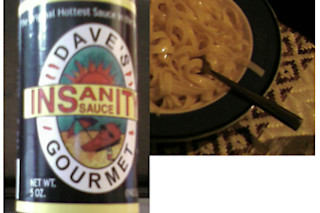 So, I tried out Dave's Insanity Hot Sauce with some Tuna pasta yesterday. Here's a comment from Amazon: "I am a real fan of hot sauce, hot peppers and anything that makes my eyes water, and I have to honestly say that Dave's Insanity Sauce is absolutely the hottest thing I've ever tasted. I use one drop in about 25 ounces of home-made tomato sauce and it makes the sauce noticibly hot. This is NOT a sauce to dash into your soup or to liven up some salsa." Hm. So I was warned. I tried a drop...and well, it was spicy, but not that spicy. So I tried a dash. Definitely made me sweat, but it wasn't like I was eating raw habanero or anything. So I tried another dash, and another. I had several servings of pasta and had about 7-8 small dashes in all. And I wasn't dousing my tongue with water at all. It was spicy, but not world shattering. Additionally, I don't think I got anything else out of the flavor (i.e., I love the non-spicy flavor in fresh green Thai Peppers). As some reviewers have noted it is a quite one dimensional sauce, the heat is cranked up, but I tasted no concomitant elevation in other flavors (e.g., sour). If fresh habanero is the standard I'd give this sauce a 7 out of 10. It wasn't a waste of money, but I'm not getting a tub of this.