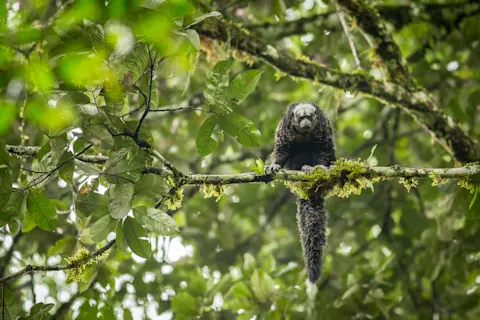 Bearded sakis are a social species. But the groups in the larger forests sometimes reached 30–40 individuals, while those in the fragmented areas often only traveled in groups of three or four. Despite the smaller groups in the latter areas, those bearded sakis lived much more densely compared to those in bigger forests. The diet changed as well — with those in the smaller sections of forest eating more suboptimal or less nutritious food.