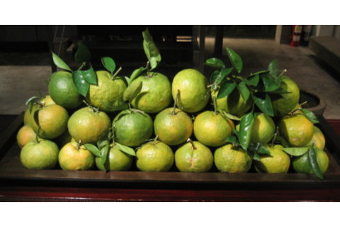 Oh. So you thought I'd stopped thinking and talking about Taiwan, right? Sorry... no! (See the archives, say under "food and drink", if you don't know to what I'm referring.) Another great thing I enjoyed while there is the fruit. There's great fruit everywhere. Reminds me a lot of part of my childhood for lots of reasons. Here's an arrangement of some type of very fragrant citrus fruit that was in a reastuarant in Hsinchu. They had several of these arrangements around the place, and it smelled divine!