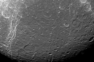 Dione reveals its past via contrasts in this view from NASA's Cassini spacecraft. (Credit: NASA/JPL-Caltech/Space Science Institute) Saturn's moon Dione has joined the growing list of watery bodies in our solar system. Data from NASA's Cassini probe indicate that a liquid ocean some 20 miles deep exists far below the icy surface of the moon. This means that its interior looks similar to two other Saturnian moons, Titan and Enceladus, both of which hide vast oceans beneath a thin crust of ice. Dione is likely different in at least one respect though: the data indicate it's ocean buried much deeper.
