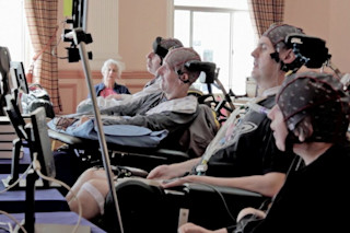 The members of the Paramusical Ensemble as they compose their piece "Activating Memory." (PACMF-15/Vimeo) A piece of music, composed in a fashion like no other before it, will be played later this month at the Peninsula Arts Contemporary Music Festival in the United Kingdom. The piece, entitled "Activating Memory," is the result of a decade-long project by researchers at Plymouth University and the Royal Hospital for Neuro-disability. Four musicians, who are unable to speak or walk, used electrical signals from their brain to select musical passages while musicians played their selections in real-time. The researchers' brain-computer interface allowed the quartet to express their musical creativity without singing or picking up an instrument.