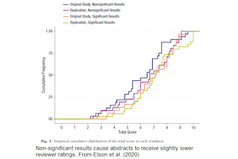 The experiment also tested whether reviewers had a preference for original studies vs. replication studies (so there were four versions of the dummy abstract in total.) This revealed no difference.