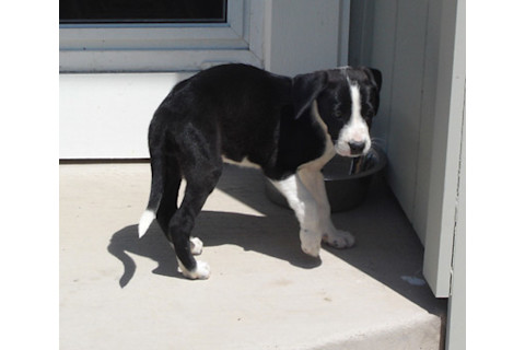 Welcome to our new pup, whom we brought home today. She is 9 weeks old, part border collie and part lab. She is incredibly cute, frisky, and smells bad. We hope at least one of these will change. She had to go through the interrogation process with Bad Dog: