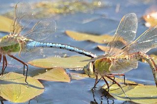 A tandem pair of Common Green Darners (Anax junius) laying eggs. © Dennis Paulson.