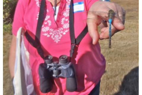 Green Darner on the finger of a course participant. Courtesy Xerces Society. The Project has enjoyed an extremely positive response from the citizen science community. “Because the adults are so lovely, I consider dragonflies to be the poster children of aquatic invertebrates. They are much easier to see and care about than the equally important but less obvious mussels, stoneflies, and mayflies,” adds Mazzacano. Many people are fascinated by dragonflies but don't really know anything about them, and consequently want to learn more, and find good places to observe them. “Interestingly, many birders are also getting into dragonflying.” There are five dragonfly species that are the most regular annual migrants in North America. The Migratory Dragonfly Partnership collects data on them in two ways, via two different but connected citizen science projects. For the Migration Monitoring project, citizen scientists report dragonflies heading south in the late summer and fall (these may be in the tens of thousands, thousands, or a steady trickle of individuals—it varies); and the Pond Watch project, where the local life history and the relationship between resident and migrant dragonflies of the same species in the same habitat is investigated. Here citizen scientists are asked to report on the presence or absence, abundance, and behaviors of migratory species at their Pond Watch site on a regular basis throughout the year. The project has only been running for three years, which means that MDP is just now beginning to accumulate enough data to publish findings. “One of the first products was a comprehensive review paper by steering committee member and [retired Rutgers University] odonate expert Dr. Mike May ,” says Mazzacano. “And we have a paper in the works about the results of the stable hydrogen isotope studies done on wings of migrating dragonflies to determine how far they traveled from the site where they developed and emerged as adults.” That paper should be out later this year. With current emphasis on the unique ability of citizen science projects to meet Next Generation Science Standards (NGSS) by providing opportunities for inquiry, MDP is now partnering with Dr. Karen Oberhauser at the University of Minnesota, who is working on dragonfly-based curriculum for school children. “And more immediately, we are beginning to work now with local organizations that focus on environmental opportunities for Hispanic youth in the Portland Oregon area to offer dragonfly-based environmental education in Spanish,” notes Mazzacano. As with many hobbies, after all the inquiry has been satisfied, it comes down to enjoyment and recreation. The most exciting thing about the project for Mazzacano is that it gets more people outdoors interacting with insects in a positive way, and connects those people to their local ponds and wetlands. “Freshwater is the most threatened resource we have, and when people learn about and start to love the creatures in local waters that they might not even have known existed prior to this, they will become more engaged in trying to protect those resources,” says Mazzacano with enthusiasm. And of course it has also been exciting for her, thanks to the data collected by citizen scientists, to be able to answer some of the many questions that exist about dragonfly migration. “I think this connection to freshwater is a benefit that will go on long after individual citizen scientists learn about, and help with MDP projects.” Would you like to become a citizen scientist in this project? Connect to the Migratory Dragonfly Partnership here, register your local pond, pack a picnic hamper and head out to monitor the timing, duration, and direction of travel of migrating dragonflies. Note any additional behaviors, such as observed migratory flight, feeding or mating, and you are encouraged to take photos or record video coverage. When gathered across a wide geographic range and throughout a span of years, these data will provide answers to questions about which species are regular migrants; the frequency and timing of migration in different species; sources, routes, and destinations of migrants; and the health of their environment.