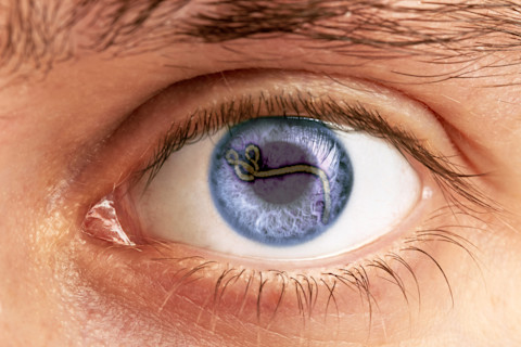 Photo credits: Eye: samsonovs/Shutterstock; Ebola virus: CDC Global/Flickr