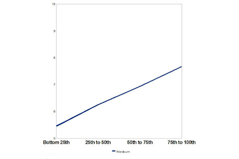 This seems plausible. How to figure this out? First, one thing to remember is that there is a correlation between measures of intelligence/knowledge and socioeconomic status. Here is number correct on the vocab test out of 10 on the Y axis and socioeconomic index divided into quartiles on the X (WORDSUM and SEI):