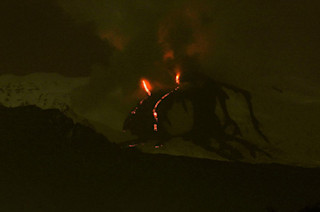 Lava flows flowing down the slopes of Etna, seen on February 21, 2013. Image: Dr. Boris Behncke / Osservatorio Etneo. It was a busy, busy week for the folks at the Osservatorio Etneo. Etna ended up producing four separate fountaining events that culminated in a number of new lava flows (see above) issuing down the flanks of the volcano from new vents below the New Southeast Crater. As of Friday evening, the flows were still moving into the Valle del Bove from this new period of vigorous activity at Etna. These eruptions were also producing a healthy ash plume that was detected up to 30,000 feet / 9 km over the volcano, drifting out over the sea, along with small lahars as well, likely produced by the lava interacting with the snow on the volcano. You can see how robust the activity was in this video of the eruption -- strombolian explosions sent large lava fragments far from the main vent while the lava fountains themselves were likely well over 100 meters tall. The NASA Earth Observatoryposted an infrared image of the activity on February 20 from Etna and you can clearly see the extent of the lava flow field on the southeastern sides of the edifice (especially well-contrasted over snow). Dr. Boris Behncke posted a series of pictures (see below) this morning of some minor new activity from the summit craters as well -- making for an all-around astonishing week of volcanism on Sicily.