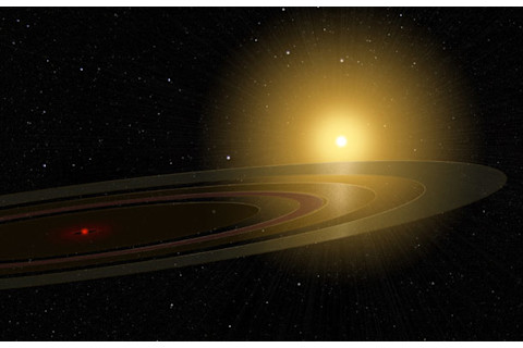 [That's an artist's impression of the system; click to encronosate.] The planet was discovered with the SuperWASP (Wide Angle Search for Planets) telescopes -- a UK project that employs low-magnification but very sensitive cameras which can observe large areas of the sky at the same time. It orbits a young star called 1SWASP J140747.93-394542.6, which is 420 light years away. The star's youth -- 16 million years -- indicates that the rings are probably the leftover remnants from when the planet formed. The planet and its rings were discovered using the transit method: looking for small dips in starlight as a planet passes directly between us and the star. This is how the vast majority of exoplanets are found. Usually, when you graph the brightness of the star over time, the dip in the plot as the planet transits the star starts suddenly, drops to some minimum, then jumps back up (see here for example). The whole thing is usually over in a matter of hours at most. But this planet took nearly two months to transit the star! And the dip was weird: there were multiple times the star dimmed then got brighter again, at one point having 95% of its light blocked. Even though the planet wasn't seen directly, the most obvious explanation is a ring system similar to Saturn's (though much larger), blocking the light. It must have gaps in the rings, like Saturn's do, to explain the starlight jumping up again over time. Overall, four rings were detected, and they stretch tens of millions kilometers in diameter! Saturn's ring are only about 300,000 km across, so clearly this planet must be much more massive than Saturn, and the rings denser. It may be a little unfair to compare it to Saturn at all; it's more like a super-Jupiter still surrounded by primordial debris. Unfortunately, we don't know how massive the planet itself is; you need Doppler data for that and none has been taken yet. The astronomers who discovered this system, of course, are looking into obtaining Doppler data. It's even possible the object is so large it's actually a brown dwarf and not a planet. Perhaps most intriguing about all this are those gaps in the rings. The easiest way to explain them is that there are objects there, moons, sweeping out the material in the rings. Saturn's rings have gaps for this reason. In fact, there are hundreds of gaps in Saturn's rings! These are caused by resonances: if a ring particle orbits twice for every one time a moon orbits, for example, the moon's gravity tugs on it every time it swings by, pulling it into a different orbit. Over time, all the particles in that orbit are gone, leaving behind a gap. If the planet itself is big, how big are those moons? Could one be Earth-sized? It's an idea that's been around awhile, but none has ever been seen... yet. All these super-Jupiters being found have a lot of gravity, and it's possible they have big moons. We're also getting better at detecting smaller objects, so it wouldn't surprise me if that announcement is made sometime relatively soon, too! I'll note that the idea of looking for rings and moons is more than an idea: the Hubble observations of the star HD 209458 I mentioned the other day were taken to look for moons and rings around that planet! None were seen, but astronomers will keep trying. There are a lot of planets out there, and one thing we've learned is that variety is the spice of nature. Image credit: Michael Osadciw/University of Rochester