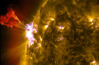 A towering eruption of plasma leaps from the Sun's surface on May 3. The image was captured by NASA's Solar Dynamics Observatory. (Image: NASA) If you visit this blog with any regularity, you might have guessed that I'm fascinated — some might even say obsessed — with images of the sun. The mind-blowing image above should show why. Captured by NASA's Solar Dynamics Observatory, it shows a fountain of plasma being propelled 120,000 miles above the sun's surface by a solar flare. Here are further details from the SDO Facebook page: