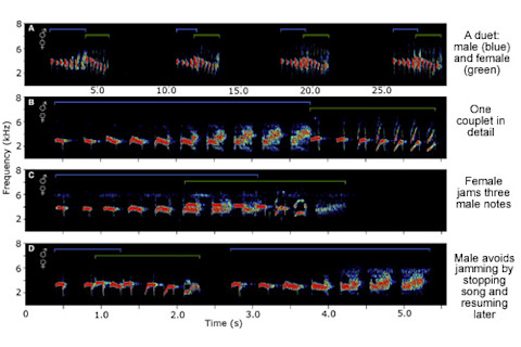 Reference: Tobias, J., & Seddon, N. (2009). Signal Jamming Mediates Sexual Conflict in a Duetting Bird Current Biology DOI: 10.1016/j.cub.2009.02.036