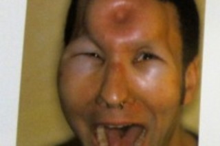 Bagel head procedure. Image courtesy of La Carmina (http://www.lacarmina.com). The episode of Taboo that featured the bagel head procedure has sparked more discussion about the procedure among various media outlets. The sensationalism of this media coverage has misinformed individuals about the procedure. The company of La Carmina, who is a television host and blogger on fashion, was involved in the production of the aforementioned episode and has expertise with the bagel head procedure. La Carmina makes three arguments to counter erroneous reports about the bagel head procedure. First, the procedure is rarely performed and not a trend among the Japanese. Maeda is cited as saying that he has performed about 10 forehead saline infusions per year since 2007. However, there are likely other persons who provide this service. Second, the procedure is not permanent, as the saline is absorbed or urinated out in 6 to 24 hours. To note, Abraham writes that the welt is present for at least 16 hours. Third, precautions are taken so that the procedure is not dangerous. This protocol involves the performance of the procedure by a certified piercer only when the clients are well rested and sober, and with the use of a sterile saline drip, gloves, and face masks.” And if images aren’t enough, here’s a video of the procedure: [embed]https://www.youtube.com/watch?v=dTcxgIhYkoc[/embed] Related content: NCBI ROFL: “the origin of penile intervention for decorative purposes is lost in time.” NCBI ROFL: Science answers the age-old question: do body piercings make you sluttier? NCBI ROFL: An evolutionary analysis of tattooed ladies.