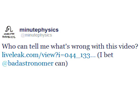 [That tweet was from Minute Physics, a great channel on YouTube which does very short, informative, and fun animated physics videos.]