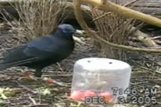 breeding season, males build a special platform, or bower, on the forest floor to lure females, and they decorate it with rare objects such as blue feathers and shiny bits of glass. They accompany this with varied vocalizations, hopping, and tail-bobbing [ScienceNOW Daily News]. To evaluate which males had the best problem-solving abilities, scientists placed a red object in the birds' bowers--a color the birds disdain. In one experiment, three red objects were placed in the bower and covered by clear plastic that the bird had to take off in order to remove the noxious items. In the next, the red object was securely nailed to the nest, so the only way to make it less visible was to cover it with leaves and twigs.