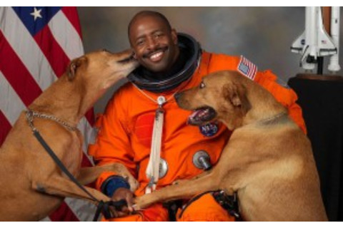 One way to share the feeling of being in space is by using familiar cues: sights, sounds, smells, and of course dogs. (Credit: NASA) But only one of those situations is life or death. Hold on, that's not true. In the NFL, if the quarterback hangs a ball and you go after it, and someone hits you and they drive you down on your neck and you snap your neck, you could be dead, or you could be paralyzed. And with the concussion situation, if someone gets hit hard in the head, that could be lifelong trauma. It could be life-ending in the long run. It might not be as dramatic as in space, where a wrong switch throw on the Shuttle could have hydrazine leaking into an auxiliary power unit and everything explodes. But there is safety and death in both settings. You had a scary, seemingly career-ending accident during astronaut training. What happened? I was training In the Neutral Buoyancy Laboratory, in a pressurized suits we use to simulate spacewalking in a neutrally buoyant environment [working in an enormous, NASA-designed swimming pool]. If you’re the kind of person who needs to clear your ears by squeezing your nose with your fingers, you can't do that because you’re enclosed in this suit with a helmet. The only you can clear is with a Styrofoam block that you put in front of your nose in your helmet, and you press your nose against it to clear your ears. On the day of training the technician forgot to put that in. When I went down into the pool about 20 feet, I was straining and I was not able to effectively clear. They took me out, popped my helmet off, blood was coming out of my ear. Over the next three weeks my hearing started slowly coming back but my left ear was almost completely gone, and in my right ear I only have speaking frequencies. I was medically disqualified. They told me, you will never fly. And yet you did make it into space after all. How did you recover? I believe my brain was rewiring itself to hear again, to have noise discrimination, to be able for me to communicate effectively with others, especially my crewmates up in space. I had to use different techniques. The way that your body adjusts to trauma, it can give you other strengths when you lose something—like when you lose one arm, the other arm gets stronger. Sometimes I feel like I have a kind of Spidey sense! I probably read lips a little. Maybe there’s also a way my skin feels the vibration of communication that I can now interpret. My episode of One Strange Rock is called Awakenings. It’s about the brain figuring out how to take all the data in with the senses to do things like getting food for your family or getting out of harm's way. In my case, somehow I was able to hear the calls from my crewmates. When you’re doing a space walk you’ll say, maybe, move me 10 inches starboard, move me one foot port. My brain went into overdrive to make sure that I was capable of doing the task. How does going into space change your senses? Does that experience also rewire your brain? It does. In space, once the main engines cut out you don’t have any g’s on your body. Those little rocks in your inner ear [that sense up and down] are now ineffective. Your brain has to shut that data off. And I think people get sick from the conflict between orientations coming from the inner ear, which is wrong, and their eyes. The faster you can filter out that incorrect data, the better off you are. Just transiting through the station, not bumping into things and knowing what orientation you're in and how fast you’re accelerating, that body control is something that you have to gain…and it depends on the person. I think because I was an athlete--because I had all this high-end training in how to control my body, running and cutting and having to lower and raise my center of gravity--I think that helped me with my adaptation to microgravity. What does the overview effect mean to you? Why do you consider it so important? I want people to think about anything you're doing that’s bigger than yourself. I think about Katherine Johnson in Hidden Figures. Her discipline and her dedication. I gave her a copy of my book and the first thing she wanted to know from me was, “When are we going to Mars? Who’s doing it?” It just blew my mind to think about this woman who challenged everything in West Virginia. She trained herself from a very little girl to be very exact.