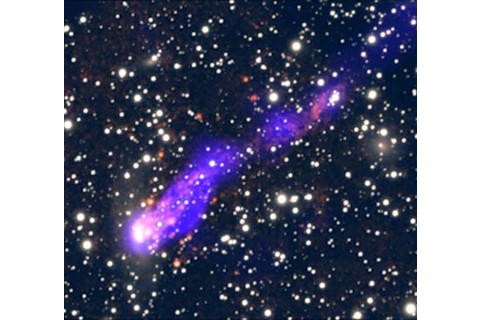 Astronomers have found a galaxy forming stars in a long tail behind it. The stars are being left behind as the galaxy plows through a galaxy cluster.