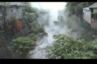 It looks like the new eruption at Gamalama has sparked quite a few mudflows thanks to some precipitation that arrived with the explosive activity. There is footage of the lahars on the slopes of the volcanoes (video) and in channels near towns (video) at the base of Gamalama as well. Remember, lahars can travel quite far from the volcano thanks to the fact that they are channelized flows - so they will follow drainages and flow upwards of 30-50 km (or more). This means that towns far from the erupting volcano may have to evacuate areas near the river channels or be prepared for potential damage to bridges or boats in the river. Videos and images of the eruption clearly show ash billowing upwards of 2 km / ~6500 feet above the vent and likely some small pyroclastic flows being generated as well. However, there have been no evacuations called on Ternate - the National Disaster Mitigation Agency (BNPB) says that the threat to the people of the island is still low, so only people living near the rivers that might see lahars have left their homes for shelters. You can check out video of the volcano seen in 2010, where the crater is obviously steaming. Meanwhile, another Indonesian volcano has been showing signs of life - Sindoro saw its alert status raised as well after small explosions and increased seismicity. Unlike Gamalama, which last erupted in 2003, you have to go back to 1971 for the last sustained activity at Sindoro. Remember, you can see the status of all the major Indonesian volcanoes here. {Special thanks to all Eruptions readers for links in this post.}