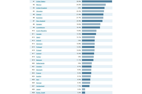 I've been trying to avoid fried foods myself; but one thing that I have been noting is that when I walk by a restaurant where there's a lot of frying going on I get really, really, curious about what it might taste like. Tastes and impulse control exhibit variation, but the mean is simply going to cause a whole lot of chronic health trouble in a world of cheap calories.* Nevertheless, we need to admit that there's a big utility return here. People really like fatty fried foods, though I think in classic Epicurean fashion the optimal pleasure is obtained by alternating between lightly cooked dishes rich in green vegetables with meat-centered items fried in saturated fats. But the optimum mix is probably still way too heavy on saturated fats. Below the fold I've posted the chart of obesity rates by nation rank-ordered. I suspect some will be surprised by #2. * I do think we should keep in perspective that the "obesity epidemic" is an unfortunate byproduct of a wealthy and well-fed society.