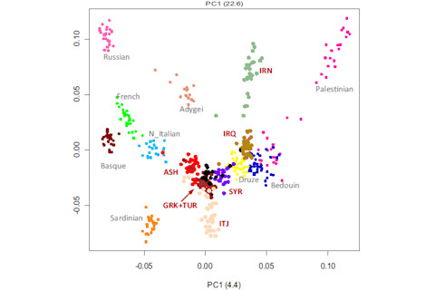 Citation: Atzmon, G., Hao, L., Pe’er, I., Velez, C., Pearlman, A., Palamara, P., Morrow, B., Friedman, E., Oddoux, C., & Burns, E. (2010). Abraham’s Children in the Genome Era: Major Jewish Diaspora Populations Comprise Distinct Genetic Clusters with Shared Middle Eastern Ancestry. The American Journal of Human Genetics DOI: 10.1016/j.ajhg.2010.04.015