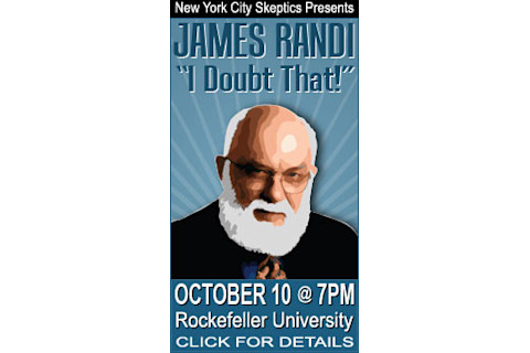 For those BABloggees in the Big Apple area, James "The Amazing" Randi will be giving a presentation called "I Doubt That!" on October 10, 2008 at 7:00 p.m. The location is the Caspary Auditorium at Rockefeller University (1230 York Avenue (66th St.) New York City). The talk is free and open to the public, and it's hosted by the New York City Skeptics. If you've never heard Randi speak, this is a great chance. He's very entertaining, and in this overview of skepticism I have no doubt -- ironically -- that he'll be a lot of fun.