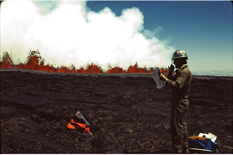 During the 1984 eruption, lava fountains, often called “curtains of fire” were a common sight. Image: Christina A. Neal, USGS Back at the observatory, calls were flooding in from as far Washington, D.C. At the time, the observatory did not have a media relations officer so volunteers manned the telephones. By the end of Sunday, March 25, the eruption’s first day, the hikers staying at Mauna Loa’s hiking lodge had safely descended and the volcano’s various hiking trails had been closed. Moreover, lava had progressed to the elevation of 9,350 feet, only a few miles away from critical infrastructure. In the face of Hawaii’s most serious volcanic threat in decades, Decker delayed his departure. According to a Hawaii Tribune-Herald article, Decker confirmed that his furniture was still being moved on Monday, March 26, “but he’ll be staying for a while.” ---- Come back tomorrow for Part 2 of Zahra's series on the 1984 eruption at Mauna Loa!