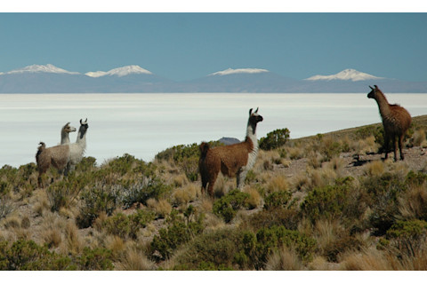 View from Tunupa looking south towards the Salar de Uyuni and snow-capped volcanoes in the background. Click here to see a larger version.