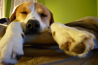 The Effect of Dogs on Human Sleep in the Home Sleep Environment "Objective To objectively assess whether a dog in the bedroom or bed disturbs sleep. Participants and Methods From August 1, 2015, through December 31, 2015, we evaluated the sleep of humans and dogs occupying the same bedroom to determine whether this arrangement was conducive to sleep. The study included 40 healthy adults without sleep disorders and their dogs (no dogs less than 6 months old). Each participant wore an accelerometer and their dog a validated dog accelerometer for 7 nights. Results The mean ± SD age of the participants (88% women) was 44±14 years and body mass index was 25±6. The mean ± SD age of the dogs was 5±3 years and weight was 15±13 kg. Mean ± SD actigraphy data showed 475±101 minutes in bed, 404±99 minutes total sleep time, 81%±7% sleep efficiency, and 71±35 minutes wake time after sleep onset. The dogs' accelerometer activity during the corresponding human sleep period was characterized as mean ± SD minutes at rest, active, and at play of 413±102, 62±43, and 2±4. The dogs had mean ± SD 85%±15% sleep efficiency. Human sleep efficiency was lower if the dog was on the bed as opposed to simply in the room (P=.003). Conclusion Humans with a single dog in their bedroom maintained good sleep efficiency; however, the dog's position on/off the bed made a difference. A dog's presence in the bedroom may not be disruptive to human sleep, as was previously suspected." Related content: Sorry, science says cats simply can’t love you the way dogs can.Shut up and pet me! Dogs prefer petting to vocal praise.The effect of petting a dog on immune system function.