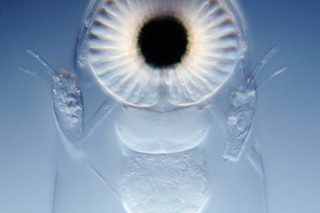Staring out of your screen is the eye of a water flea, a largely transparent crustacean that can reach half an inch in length. Its intricate eye—and it has only one—is a clue to the creature’s overall complexity: Last year scientists found that it has 30,907 genes, about 5,000 more than humans have. This micrograph of a live specimen was named an image of distinction in last year’s Nikon Small World competition. “I capture organisms as realistically as possible,” says photographer Wim van Egmond, “but the microworld is so unknown that the result is almost like abstract photography.”