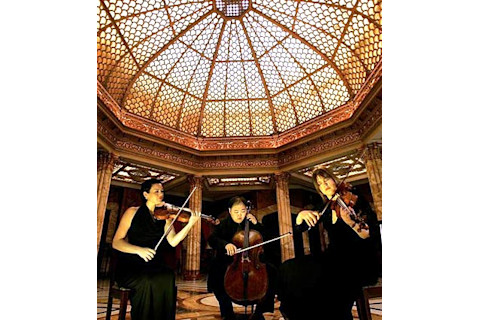As I've mentioned here before, one of the features that makes Los Angeles such a wonderful city is all the hidden gems that abound, teasing you to find them. When you do, the pleasure of having found them really glows inside you for a while. Typically, you'll find that pretty much everybody who knows anything about the city (and has not already prejudged it by viewing it through the glasses of European or European-wannabe (read: East Coast) models of cities) shares this feeling. This is also why people often hate the city. They can't find things immediately, they see it from the freeway, and they decide that it is just an awful place, and pretty quickly the stupid cliches about there being "no culture" (which always means "no European culture", sigh) begin to be repeated. So imagine my delight when there was an article on Thursday called "Stages of Discovery", in the Weekend Calendar section of the LA Times. It talked about some of the places in the region you can go to see music concerts of the "classical" (in the broad sense) type, besides the excellent Music Center Downtown, housing among other things the Disney Hall, of which I've told you of events several times before. Have a read of the article, by Chris Pasles, here. Well, I had other things to do on the bus the next morning (which is when I read the Calendar Weekend section...it gives me ideas about what extra activities I might get up to that weekend beyond things already planned) and so I did not read it as thoroughly as I should have. I skimmed through in that way that one does when one is happy to satisfy oneself smugly that one already knows of and had been to at least some of the "hidden gems" already, and then made a mental note to keep the article for later detailed analysis, to learn more about the places that I did not know about. On the cover was a picture (by Genaro Molina) of a particularly interesting looking performance space, with the Janaki String Trio posing in it: