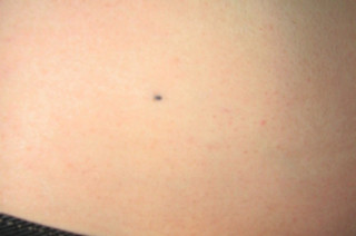 Frank writes, "Hey there! I didn't tattoo science, science tattooed me! I'm coming up on being five years free of testicular cancer thanks in part to this tiny tattoo that helped the technicians correctly align my Guidant radiation treatments."