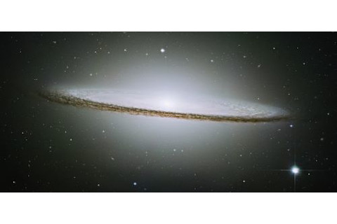 One of the greatest edge-on galaxies in the sky, and the one most people say looks like a flying saucer, is the Sombrero Galaxy (M104) in Virgo. It consists of a great rotating disk with a prominent dust lane edging it, consumed by a glowing halo of gas and stars. It lies 43 million light-years away and is about half the size of the Milky Way, sporting a diameter of 49,000 light-years. (Credit: NASA and the Hubble Heritage Team (AURA/STScI))