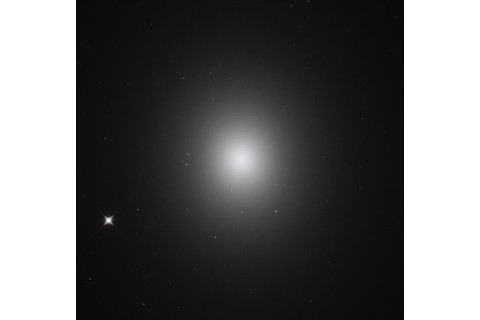 Elliptical galaxies like M49 in Virgo are huge spheres of stars that float in an ellipsoidal cloud. Although their diameters are often similar to large spiral galaxies, they can hold vastly more mass because they are shaped like a football rather than a disk. This galaxy lies some 56 million light-years away and is one of the more massive galaxies in the Virgo Cluster. (Credit: NASA/ESA/STScI)