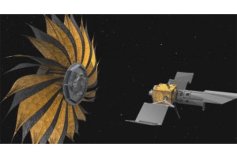 Simulated view shows how the HDST + a coronograph combo would see our solar system if it were transported to a nearby star. (Credit: L. Pueyo, M. N’Diaye/STScI) Sara Seager of MIT, a leading exoplanet researcher, expects HDST could measure “dozens of exo-Earths,” distinguishing the true Earths from the Venus types, along with whatever other, unforeseen kinds of strangeness may be out there. Now we are getting somewhere…and yet this is still not the end of the journey that Michel Mayor and Didier Queloz began 20 years ago this month. Coronagraphs have their own limitations, you see. Creating a miniature eclipse inside the telescope steals some of your precious light and, worse, it allows only a narrow field of view. Those flaws restrict the places you can look for Earth 2.0, and they make it difficult or impossible to assess the whole surrounding planetary system. Idea #2: Create an artificial eclipse in space There is another solution waiting in the wings: Instead of creating an eclipse inside the telescope, block out the starlight on the outside, an approach that Seager has long championed. Jeremy Kasdin at Princeton University is leading the design of this starshade technology. “We know how to do it. There are no technical hurdles. The hardest part, actually, is testing it,” he says. He’s working on that now, building a miniaturized version in his imaging lab. The starshade concept sounds disarmingly like a science fair project gone mad. You fly a petal-shaped disk about a thousand kilometers in front of your telescope. You align it in front of a desired star and you hold it in place it to an accuracy of about 1 meter. And then—voila!—when you look through the telescope you see the surrounding planets but no blazing-bright star in the middle. In principle, a starshade is the most efficient way to collect and analyze the light of another Earth, and it places no restrictions on your ability to scan all of the other planets around it. The big problem is propellant: “You need a rocket to move the starshade from target to target,” Kasdin notes. Depending on where your target stars are located, it might take days or weeks to reposition the shade appropriately, and at some point you’ll run out of fuel to keep nudging it around.