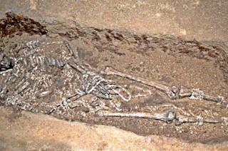 Before that, between 40,000 and 130,000 years ago, there are about 30 cases of deliberate burials widely accepted as such by archaeologists. They’ve been found in Europe and the Middle East, and are not just restricted to Homo sapiens. Our evolutionary cousins, Neanderthals, also interred their dead during this timeframe at sites like La Ferrassie, France and Shanidar, Iraq.