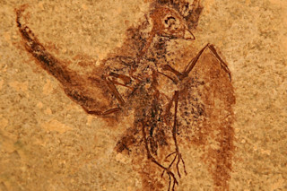 E. rowei was an evolutionary precursor to the group that includes today's swifts and hummingbirds. Courtesy Lance Grande of the Field Museum of Natural History Despite being closely related, hovering hummingbirds and gliding swifts evolved markedly different wing shapes and flight characteristics, ruffling the feathers of scientists trying to understand when the birds’ lineages diverged. However a newly identified fossil of the birds’ common ancestor is helping paleontologists piece together the shared past of swifts and hummingbirds. The fossil — that of Eocypselus rowei — is notable particularly for the preservation of its feathers, making reconstruction of the wings far more accurate than from skeletal remains alone. E. rowei, found in the fossil-rich Green River Formation in southwestern Wyoming, lived 50 million years ago and was less than five inches long from head to tail. Like hummingbirds and swifts, the small bird had a notably stout humerus, or upper-arm bone. According to a reconstruction based on its bones and feathers, however, E. rowei’s wing shape differed from both of its modern relatives. The wing represents an intermediate shape between the two, suggesting the Pan-Apodiformes lineage evolved a small body shape first before splitting into different wing shapes and flight characteristics, according to findings published today in the Proceedings of the Royal Society B. Hummingbirds have a short wing with a blade-like shape that creates lift on both the upstroke and the downstroke, allowing the birds to hover. Swifts, however, evolved markedly elongated wings for efficient gliding as well as speed — the aptly-named swift holds the record in fastest level flight among all birds, reaching speeds of nearly 70 mph, according to a 2010 study. Although peregrine falcons have been clocked at more than 180 mph when diving at prey, they’ve got gravity on their side. Level flight is more difficult and requires more power from the bird itself — and no bird is swifter than the swift. Given the medium-sized wing shape of E. rowei, the study’s lead author Daniel Ksepka noted, “this fossil bird represents the closest we’ve gotten to the point where swifts and hummingbirds went their separate ways.” Scientists studying the E. rowei specimen’s feathers also discovered fossilized melanosomes — tiny cell structures with melanin — that suggest the bird was probably black, and possibly had an iridescent sheen similar to that of modern swifts.