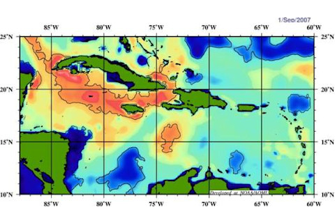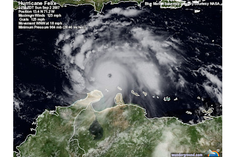 Whoa boy. And the intensification very likely isn't over yet. In fact, as I note in the latest Storm Pundit column, the Caribbean only gets more conducive to hurricane strengthening as you head further west; and indeed, there's a deep patch of warm water ahead of Felix:
