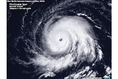 Courtesy of Jeff Masters, here's a powerful image of Igor at what may be its maximum strength, just shy of Category 5: