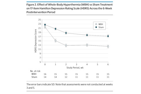Getting warm has a dramatic antidepressant effect, according to a new report published in the prestigious journal JAMA Psychiatry. But is it hot science or a hot mess? The researchers, led by Clemens Janssen of the University of Wisconsin-Madison, studied 29 people with depression who were not receiving any other treatments. Half were randomized to receive whole-body hyperthermia (WBH), using a setup which raised their core body temperature to 38.5 degrees (37 degrees is normal).