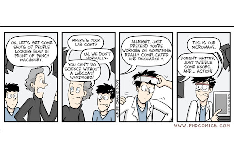 Reporter: 'Stop, let's reshoot. We need you to say something about the sun being a factor. And let's get you wading into the water. Pretend you're catching something.' Me: 'Uh, the sun didn't cause the bloom... and you do realize I'm wearing a dress, right?' Reporter: 'You can say your reason too, but name the sun as another 'theory'. And just look science-y.' Anyway, the segment never made it to air. Go figure. Jorge Cham sums it up well here: