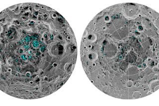 The image shows the concentration of water ice on the lunar surface. The south pole and its hefty concentration of ice within craters is shown on the left, and the right shows the more sporadic, wide spread ice on the north pole. (Credit: NASA) We’ve seen evidence of ice deposits on the surfaces of Mercury and Ceres, but we can now add a much closer celestial body to the club. Research published on August 20 in the Proceedings of the National Academy of Sciences shows that specific signatures of water ice exist atop the cold, dark craters near the moon’s poles — proving the existence of lunar surface ice for the first time. This story probably sounds familiar, and that's because it isn't the first time we've found water particles on the moon. Water was detected back in 2009 when NASA’s Lunar CRater Observation and Sensing Satellite (LCROSS) shot into the south pole's Ceabeus crater and exposed its subsurface, but this only proved that water exists within the moon, but not necessarily on the moon's surface. Other instruments have also detected reflective surfaces that resemble surface ice, but things like reflective soil could easily explain that away, rendering the findings inconclusive. To finally get some hard evidence, a group of scientists looked back at data from NASA's Moon Mineralogy Mapper (M3), a visible and infrared spectrometer that rode aboard India's Chandrayaan-1 orbiter during its 2008-2009 tour. M3 was capable of directly measuring how molecules on the moon's surface absorb infrared light, which distinguishes surface ice from liquid water, water that’s held in minerals and water that’s hidden under the surface. It was also able to detect the specific reflective properties that are often given off by surface ice. When they combined these two factors, they found reflective properties, as well as definitive interactions between molecules and infrared light, that indicate the presence of water ice on the lunar surface. The moon’s south pole showed high concentrations of ice in lunar craters, whereas the north pole's ice was more spread out across the surface. Why ice was found congregating near the poles and in craters isn't a complete mystery, either. Deep, frigid craters are often referred to as “cold traps” — areas so cold that water vapor inside them freezes and is unable to escape for significant periods of time, possibly billions of years. And due to the moon’s tilt and rotation, the cold traps near the poles are shielded from direct sunlight and only reach -250 degrees Fahrenheit (-121 degrees Celsius). Compared to the maximum equatorial temperatures of 260 degrees Fahrenheit (126 degrees Celsius), the cold, polar basins are more likely to hold on to water. And this is good news for astronauts. The surface ice might be easier to access than underground water, which could be useful in future manned missions. The amount of surface ice is unknown, but if there’s enough, missions could potentially use it as drinking water, convert it to oxygen for breathing, or use it as rocket fuel by converting it to oxygen and hydrogen. There’s still a lot we don’t know about the newfound surface ice, but further exploration could help us understand how it got there, and what its role was in the moon’s mysterious formation and evolution.