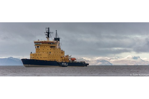 The Swedish icebreaker Frej rides at anchor just off Longyearbyen in Svalbard. As sea ice shrinks, more open water could lure increased ship traffic to the region. Although there will like be less ice, conditions will still be harsh and prone to sudden local shifts — ironically increasing the need for ships like this. (Photo: © Tom Yulsman) Polar bears and shipping magnates — not to mention phytoplankton and fishermen — might be interested in what Barnhart and her colleagues found: