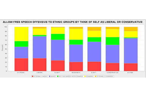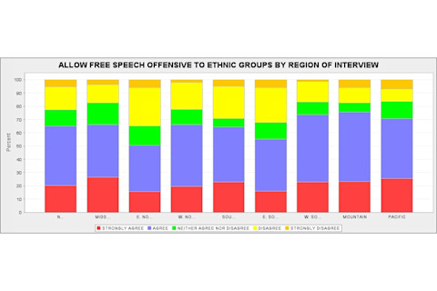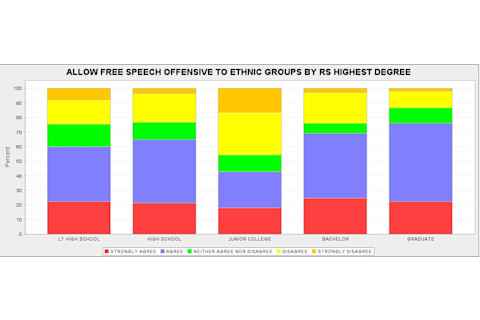 In the United States we have the free speech built into the law, so it is somewhat a moot point. Of course, as evidenced by comments in many other Western countries the limits to speech are bounded by public consensus. So I decided to look at the GSS in terms of response to one question: