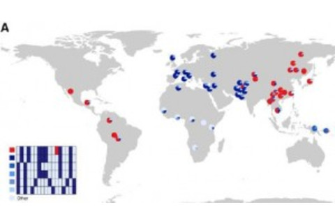 There's an excellent paper up at Cell right now, Modeling Recent Human Evolution in Mice by Expression of a Selected EDAR Variant. It synthesizes genomics, computational modeling, as well as the effective execution of mouse models to explore non-pathological phenotypic variation in humans. It was likely due the last element that this paper, which pushes the boundary on human evolutionary genomics, found its way to Cell (and the "impact factor" of course). The focus here is on EDAR, a locus you may have heard of before. By fiddling with the EDAR locus researchers had earlier created "Asian mice." More specifically, mice which exhibit a set of phenotypes which are known to distinguish East Asians from other populations, specifically around hair form and skin gland development. More generally EDAR is implicated in development of ectodermal tissues. That's a very broad purview, so it isn't surprising that modifying this locus results in a host of phenotypic changes. The figure above illustrates the modern distribution of the mutation which is found in East Asians in HGDP populations.