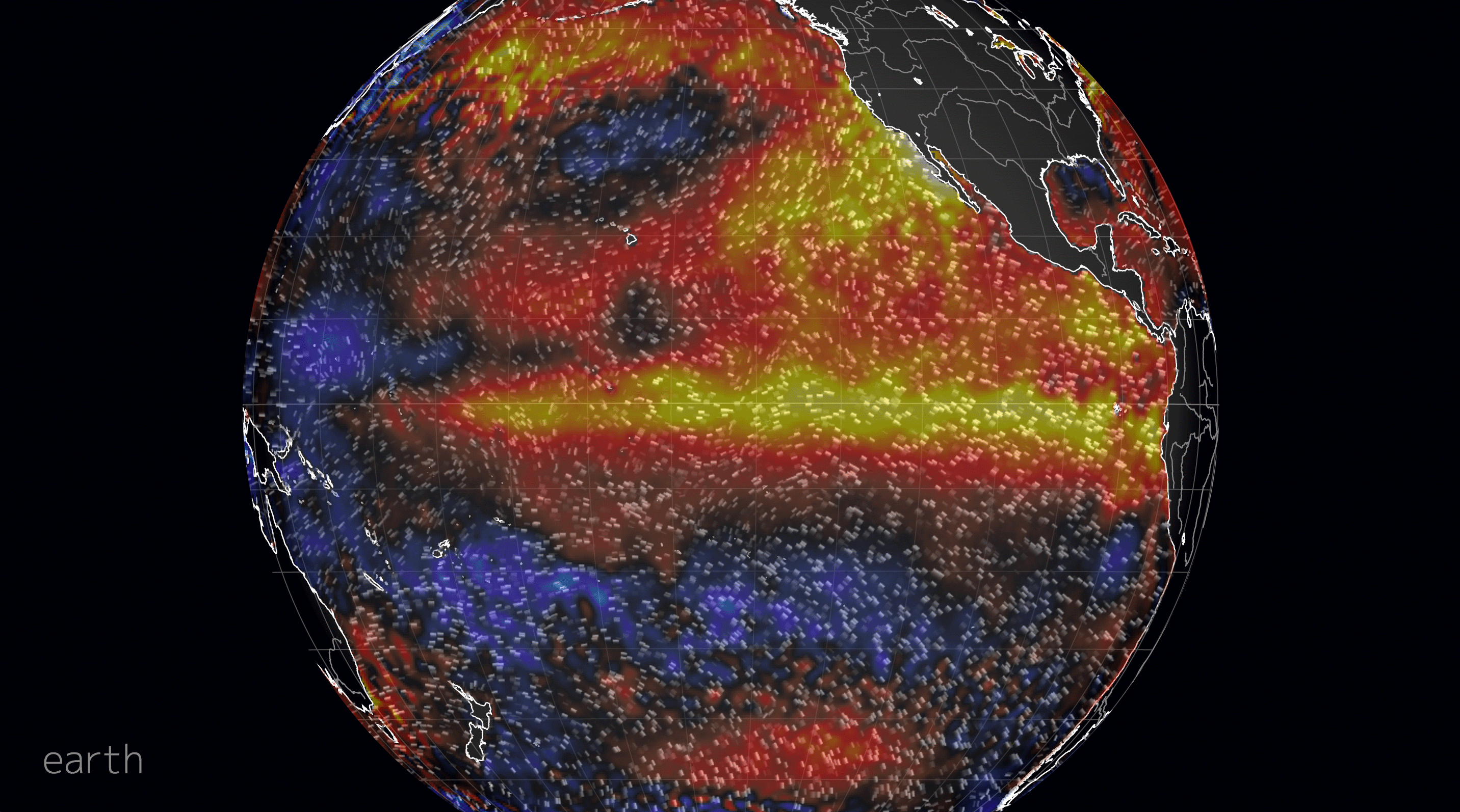 An atmospheric loop known as the Walker Circulation is illustrated here, overlaid on a map of average sea surface temperature anomalies. Cool waters prevail in the central and eastern Pacific Ocean, with sinking air that suppresses storminess above it. Meanwhile the western Pacific is warm, enhancing the rising branch of the circulation near Indonesia and leading to greater storminess. (Source: NOAA Climate.gov drawing by Fiona Martin. ) As the diagram above shows, the atmospheric circulation pattern includes strong winds blowing from east to west across the equatorial Pacific. These trade winds are crucial, as explained by Emily Becker at the awesome ENSO Blog: