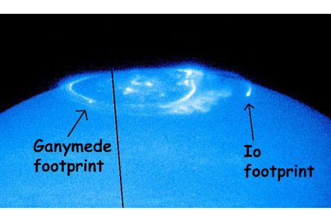 One of the most beautiful sights in the sky (at least, so I've heard, since I've never ^%$#&*# seen one) is an aurora. The Earth has a magnetic field that traps charged particles from the Sun, and due to complicated processes that are still being investigated these particles can slam into our air, causing it to glow (exactly) like a neon sign. But we're not the only planet with a magnetic field. And some moons have them, too. Check this image out: