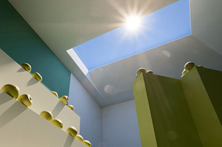 When we step outside on a sunny day, the light that reaches us is actually filtered through the carbon dioxide, oxygen and nitrogen molecules that make up the atmosphere. The excited molecules scatter the blue light — the smallest wavelength — more intensely than colors with larger wavelengths. This effect, known as Rayleigh scattering, is the reason the sky is blue. Using nanoparticles, CoeLux designers essentially compressed six miles of Earth’s atmosphere into a few millimeters to artificially recreate Rayleigh scattering. And rather than a gas, CoeLux’s light source passes through a solid layer. The light itself is an LED projector that emits white light in a spectrum that mimics the sun's output. A "sophisticated optical system" (but with few details provided) creates the sensation of the distance between the sky and the sun. What results is stunningly close to looking at the sun through a real skylight (CoeLux even makes a point to assert its website photos aren’t doctored in any way). Buyers can even choose from one of three different types of sunlight: tropical, Mediterranean and Nordic. Each setting is a different color temperature, and the sun shines through at a different angle. http://youtu.be/aJ4TJ4-kkDw