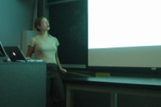 So as I'd mentioned earlier was going to happen, Risa visited USC and gave us a colloquium today. It was excellent, and was very well received by the department. (For example, it is highly unusual for so many students to ask questions - and not just at the end but at several points through the colloquium.) Have a look at her abstract in the previous post. I learned a lot about what's the state of the art in these studies of the evolution of structure in our universe, which are so crucial for understanding the role of dark matter and dark energy in how our universe looks today. For more on this, see Risa's website for links to lots of material she presented in the Compton lectures earlier this year. -cvj