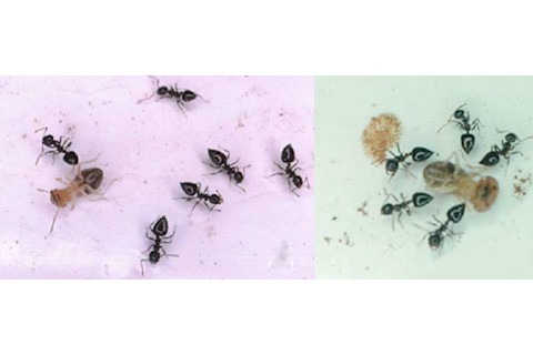 from the Jean-Francois Champollion University Center saw this ability in action when she watched C.striatula take on termites. C.striatula is a specialised termite-hunter. When it finds a termite, it raises its sting into the air, releasing chemicals that summon nearby nestmates. If the termite is a soldier, armed with powerful jaws, up to 15 ants can gather round. All of them stay a centimetre away from the termite, aiming their stings at it like fencers with swords outstretched. They close in, but they still never actually touch. Termites don’t retreat – they defend their nests no matter the danger. That is a fatal mistake. After ten minutes of stand-off, the termite starts to shake. It rolls onto its back, with its legs batting the air in helpless convulsions. Within moments, it’s paralysed, and the ants finally move in and grab it. C.striatula behaves in the same way when it finds other ants in its territory. These intruders have the good sense to flee, even if they're much larger than C.striatula and even if they have the weight of numbers on their side. It’s clear that the chemicals released from C.striatula’s sting do three things: they rally other workers; they repel other ants; and they paralyse termites. To learn the secrets of thesechemical weapons, Rifflet dissected the glands of workers. Ants have two glands that feed chemicals into their stings – the poison gland (no prizes for guessing what that does) and the Dufour gland, which releases pheromones for marking trails and raising alarms. But in Crematogaster ants, it’s actually the Dufour gland that acts as the source of venom, which is then weaponised by enzymes stored in the poison gland. Rifflet made extracts from the Dufour glands of C.striatula workers, and confirmed that they alone could paralyse and kill termites. The glands contain at least 50 chemicals including a very large one – an alkaloid