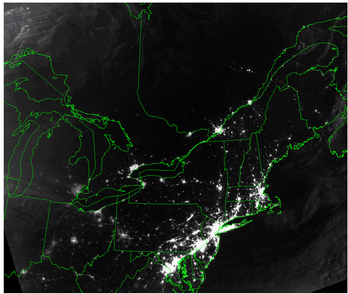 Power was restored to some cities within hours. But for 50 million people, it was out for days. You can see the transformation from light to dark in the animated gif. The first image was acquired on Aug. 14 about 20 hours before the blackout, according to NASA. The second image shows the same region seven hours afterward. Not all the lights are out. But Long Island goes almost completely dark. Detroit, Cleveland, Columbus, Toronto and Ottawa are particularly hard hit. Buffalo and much of upstate New York are too. Although not blacked out completely, the densely populated corridor from Washington to New York darkens considerably. But Boston seems to emerge unscathed. (I'm not sure why there are any lights at all in New York, since the city was blacked out.) Check out the NPR piece for details on why the blackout occurred, and what's been done to prevent something like that from happening again. Suffice it to say that while risks have been reduced, there are no guarantees.
